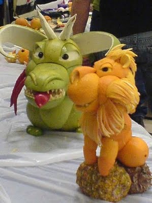 Эти удивительные скульптуры сделаны - из чего бы Вы подумали? - из апельсинов! Эти апельсиновые скульптуры нельзя есть. Ими нужно любоваться, восхищаться, вдохновляться.